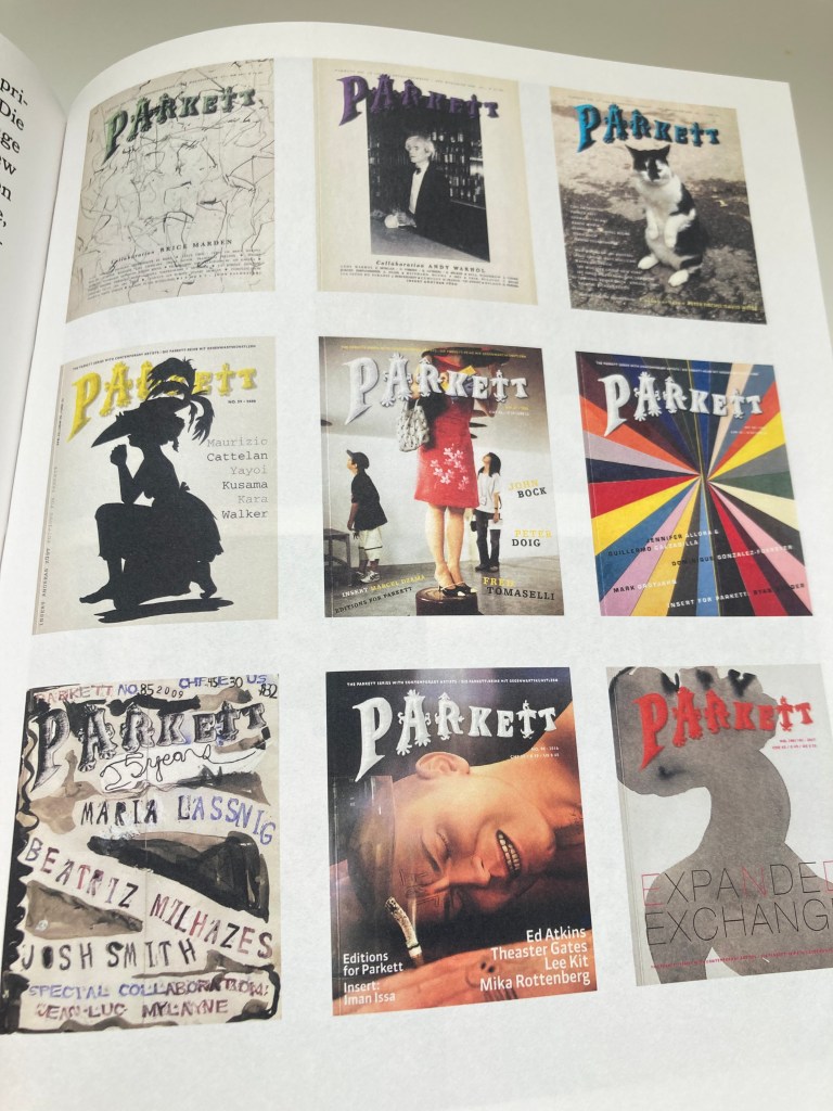 Parkett was published for 30 years up to 2014. It featured and collaborated with some of the greatest contemporary artists and writers: Meret Oppenheim, Sigmar Polke, Pipilotti Rist, Laurie Anderson, Joseph Beuys, Dan Graham, El Anatsui, to name but a few.